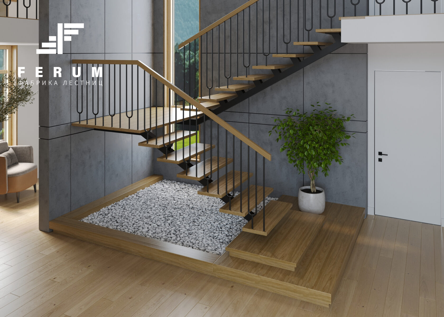 Металлический каркас лестницы даёт надёжную основу, которая несёт все нагрузки. Между каркасом и всеми деревянными элементами лестницы при монтаже промазывают специальный состав, благодаря чему удаётся навсегда предотвратить скрип и посторонние звуки